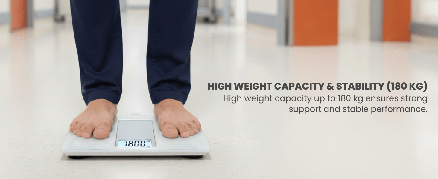The personal bathroom scale is a real eye-catcher with its elegant glass insert. The large LCD display makes weighing exceptionally easy.