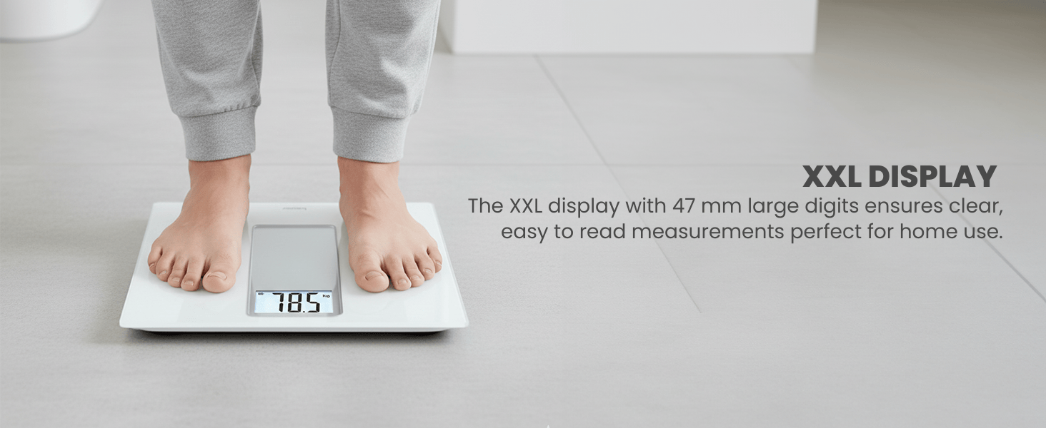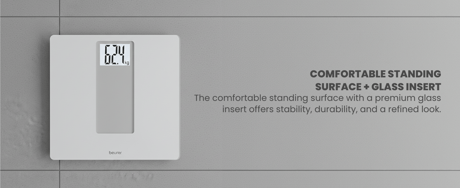The personal bathroom scale is a real eye-catcher with its elegant glass insert. The large LCD display makes weighing exceptionally easy.