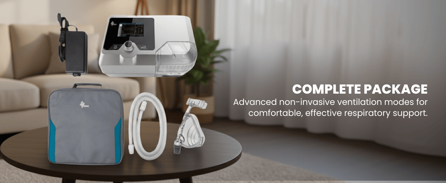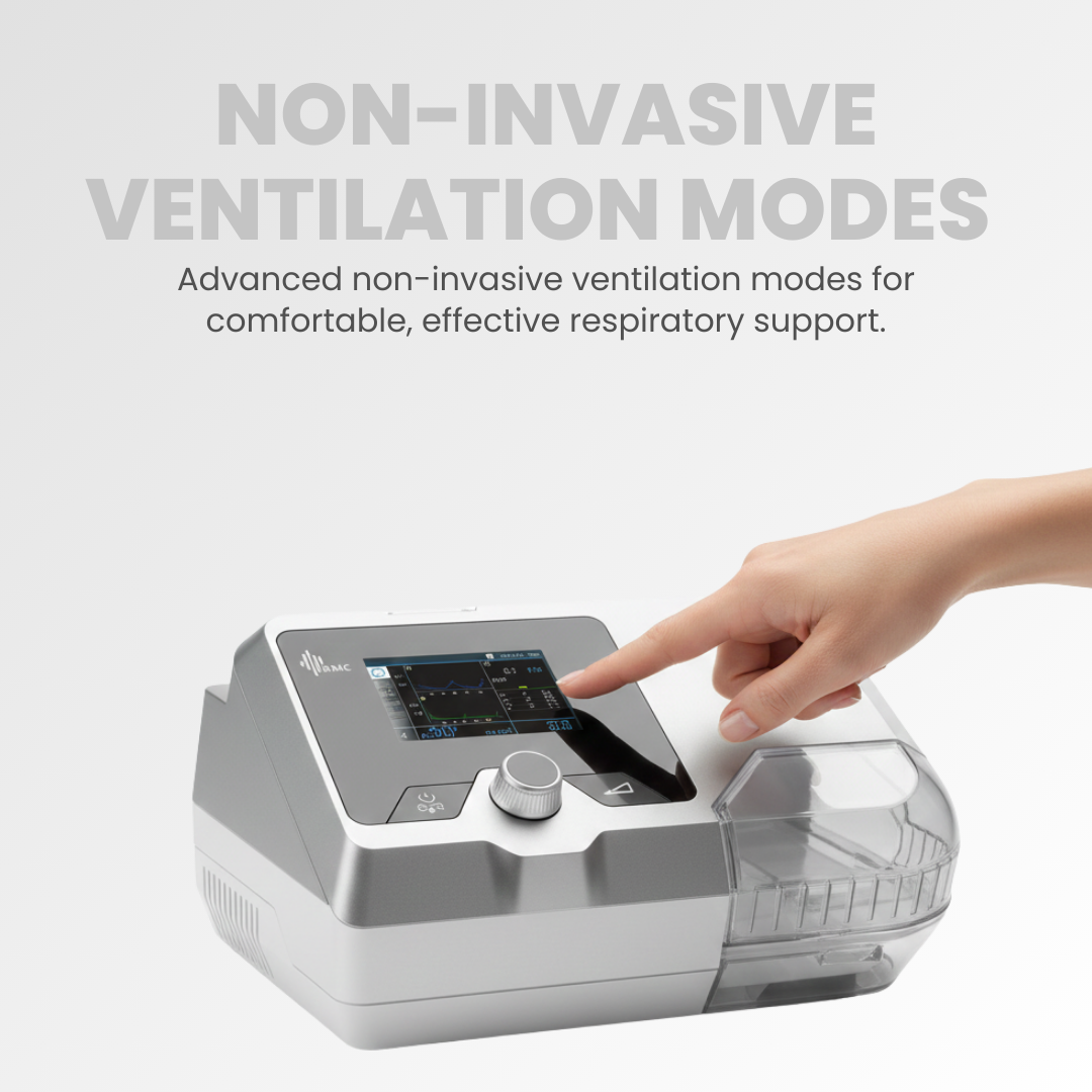 Provides non-invasive ventilation for OSA and respiratory insufficiency, offering CPAP, S, T, S/T modes with a pressure range of 4–30 cm H₂O.