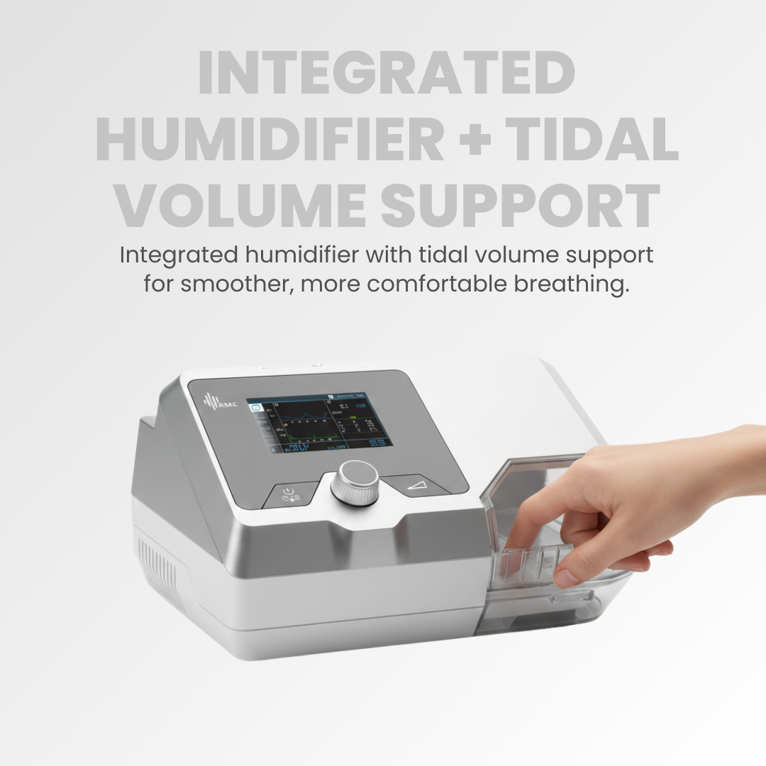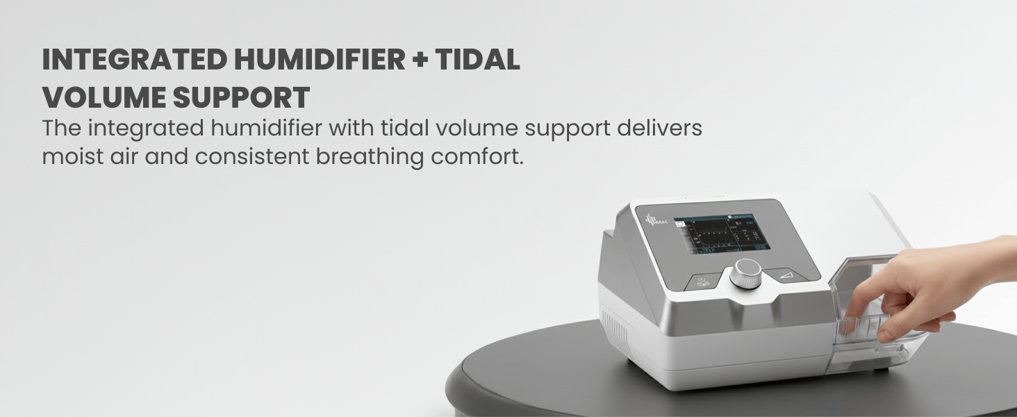 Integrated humidifier for added comfort and targeted tidal volume delivery for optimal respiratory support.