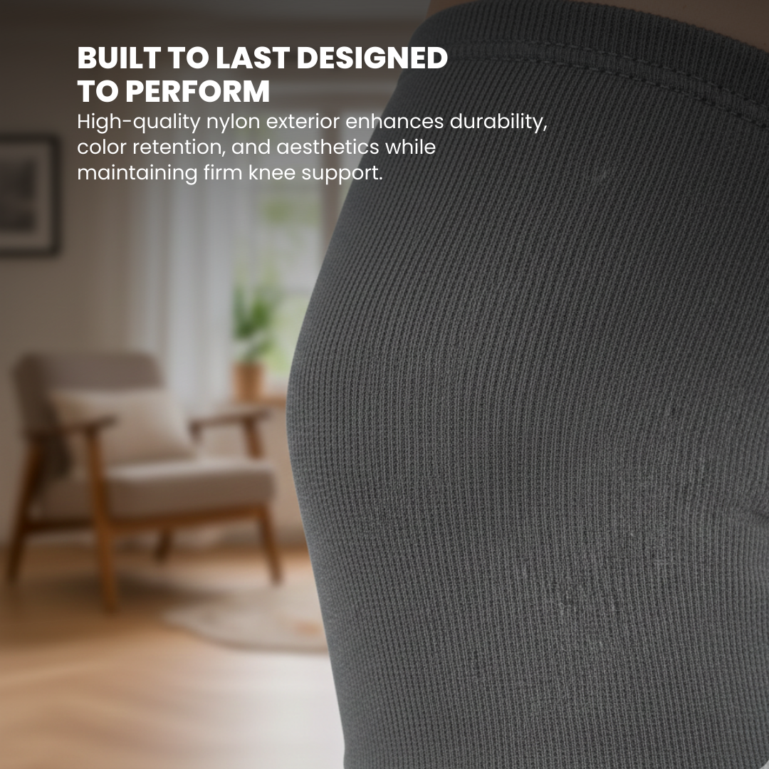 The nylon on the outside ensures long life of the product and offers excellent aesthetics along with increased color fastness. The two layers enclose the air space and retain body heat effectively. It ensures long provides therapeutic warmth and assuring support to the knee. - SPEEDS UP HEALING