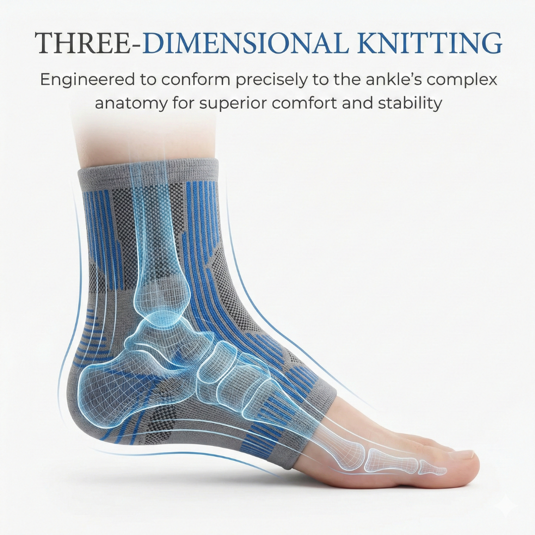 The compression sleeve is knitted in 3 dimensions so that it conforms to the complex anatomy of the ankle with exactness. - BI-LAYERED COTTON ON THE INSIDE