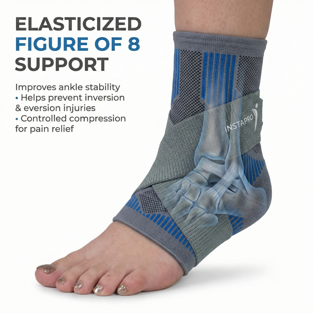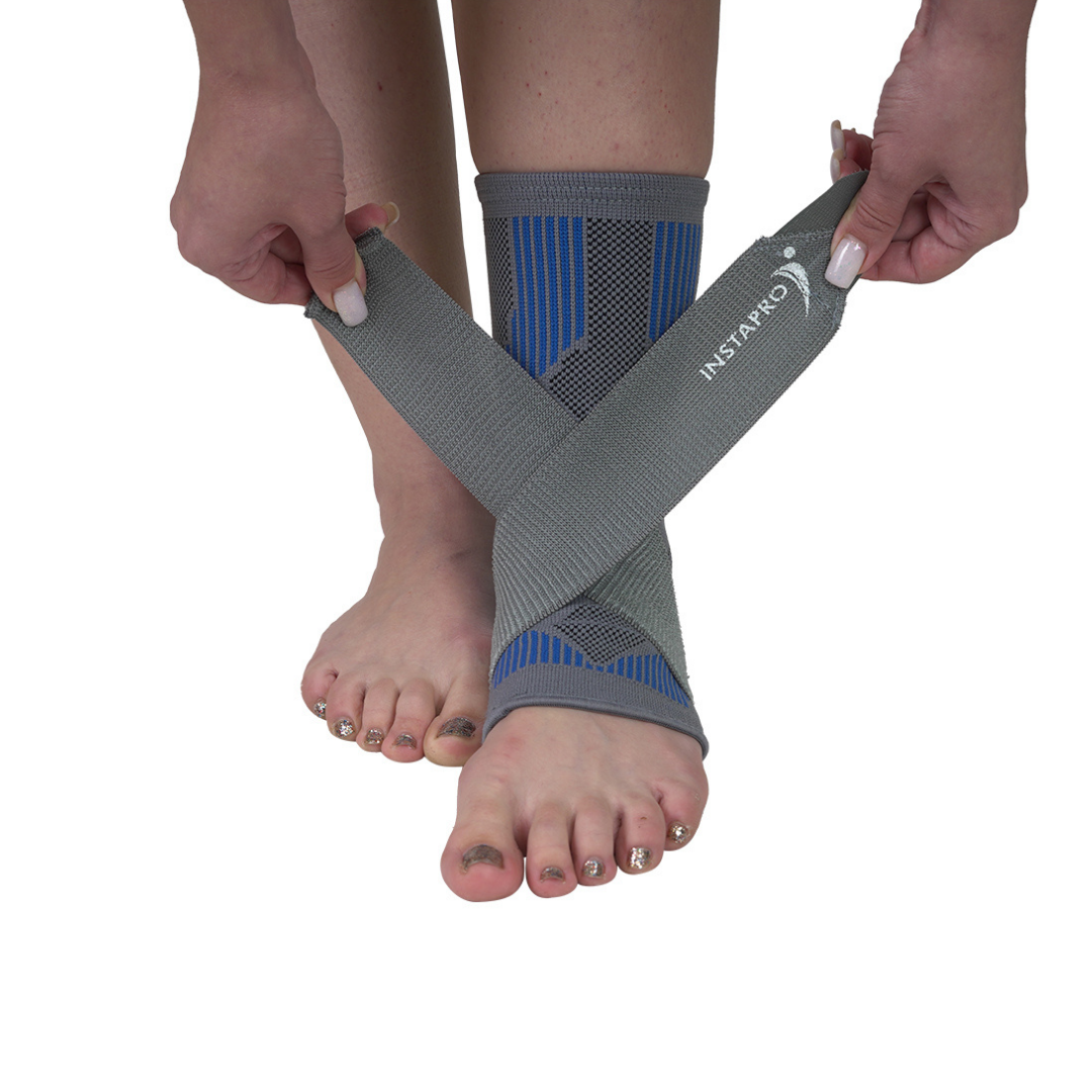 Ankle binder designed to control pain, edema, and inflammation associated with ankle injury or sprain, Instapro ankle binder supports, compresses, and partially immobilizes the ankle. They consist of two components, a compression sleeve and an elasticized strap. A 3D knitted sleeve conforms precisely to the anklet’s complex anatomy.
