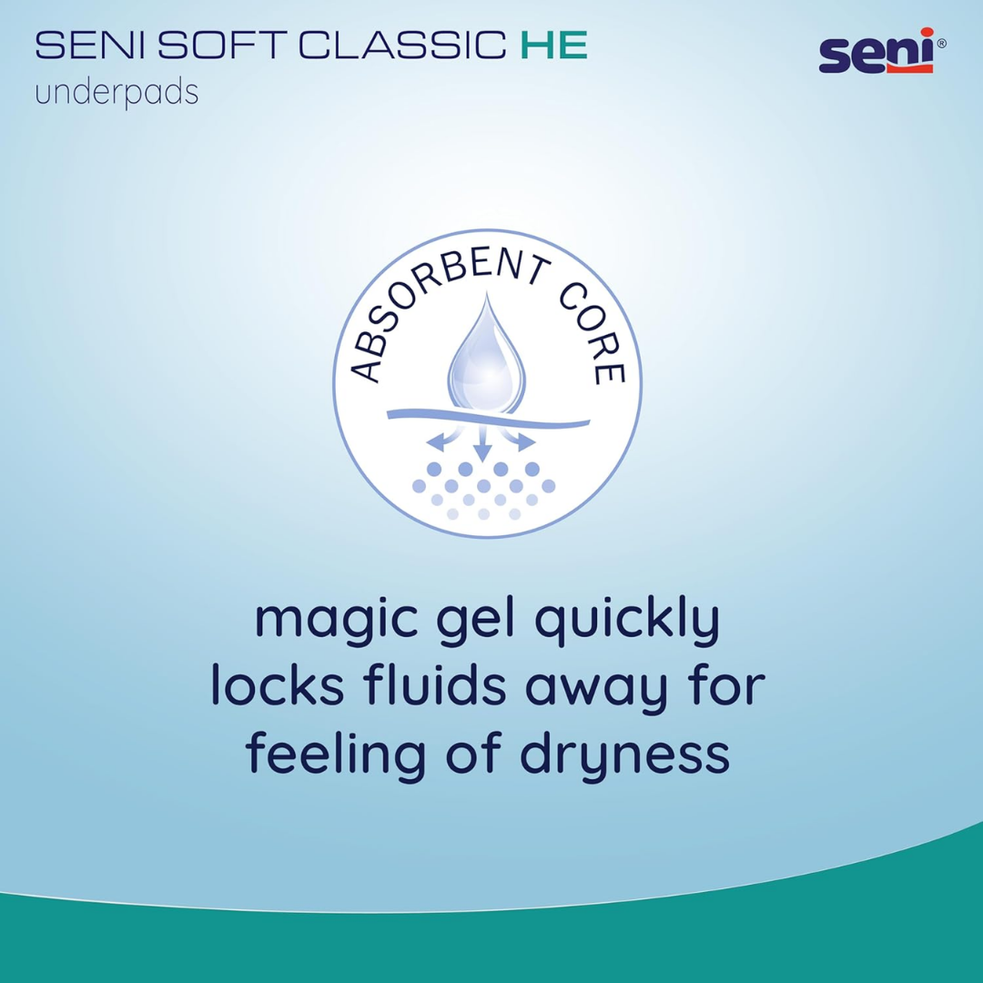- Seni underpads are ideal protection of any surface, can be used on bed, wheelchair, during diaper changing or body washing