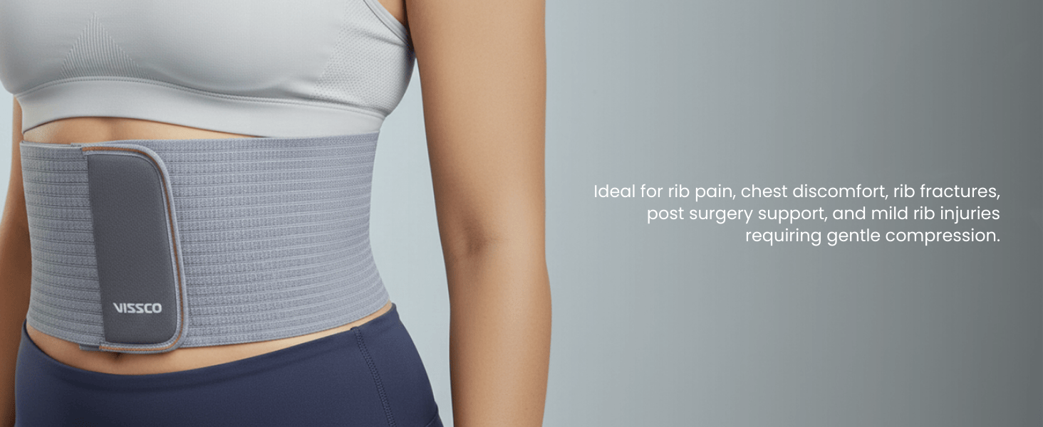 - Ideal for rib pain, chest discomfort, rib fractures, post-surgery support, and mild rib injuries needing gentle compression.